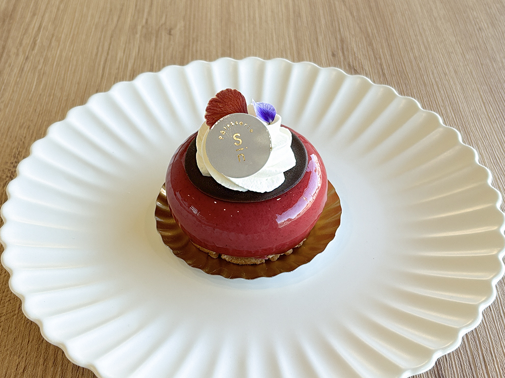 苺とカシスのムースで包み込んだ、甘酸っぱさとコクが調和した華やかな味わいのケーキです。